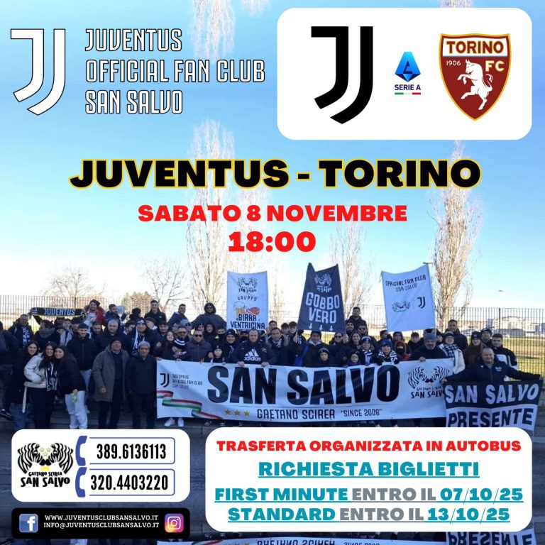 Salve amici bianconeri,è partita la richiesta biglietti per la partita di campionato all’Allianz Stadium tra Juventus e Torino che si terrà il giorno sabato 8 novembre alle ore 18:00. Vi ricordiamo: INFORMAZIONI STADIO E BIGLIETTI Juventus – Torino La partita si giocherà nella…